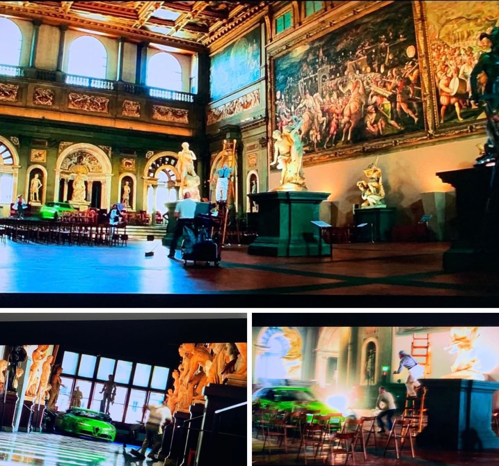 UPSETTING–I find this scene in 6 UNDERGROUND very disturbing violence. Probably what makes it so disturbing for me is the sick, glib joking around while timeless Art is distroyed by a tawdry sporting car. The gallery is The Florence Academy, where Michelangelo’s David is. DEADPOOL is like that, too, but without art.